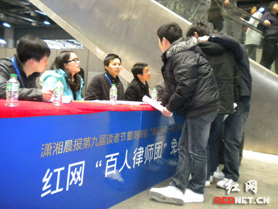 红网长沙3月9日讯(记者 李卫林 见习记者 刘灿)今天,红网“百人律师团”现身“我的城市我的生活”潇湘晨报第九届读者节暨湖南省“春风行动——融入我的城市”大型公益招聘会现场,耐心为广大求职者现场提供免费法律咨询服务。“一些求职者和企业的法律意识淡薄,求职者维权意识还有待加强。”“百人律师团”之一的湖南弘一律师集团专职律师尹兰英在招聘会结束后发出了这样的感慨。