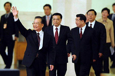 [温家宝总理举行记者招待会] [向记者介绍新上任的四位副总理]