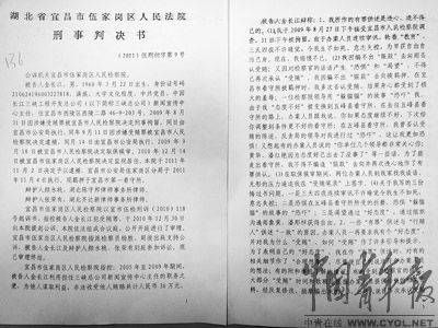 宜昌市伍家岗区人民法院(2011)伍刑初字第9号判决书共8页,其中有一页多的篇幅记述了金长江的自我辩解。