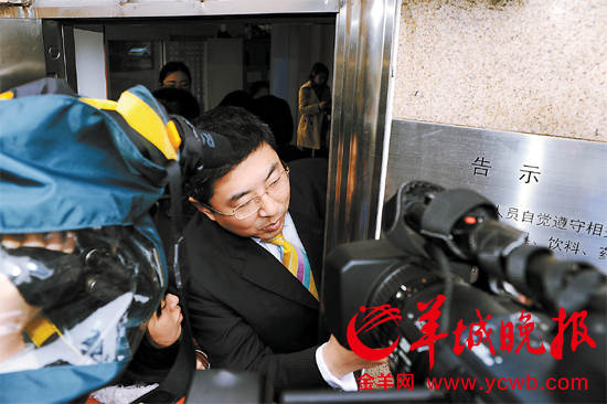 今早,深圳唯冠和苹果的侵权案在广东省高院开庭审理。双方人员被大批媒体记者围堵 羊城晚报记者 黄巍俊周巍 摄