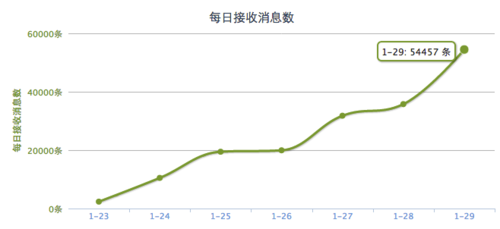 一周以后结果出来,数据让人大跌眼镜,微信平均每天带来的注册用户近千人,而Android只有四五百人,团队负责人说“真没想到过微信公众平台爆发力那么强,每天增加几千个新粉丝,消息数天天创新高,网站注册用户数一直在增加,太给力了,今后将主要精力放在微信公众平台开发上!”。这里截了一些数据图让大家见证下: