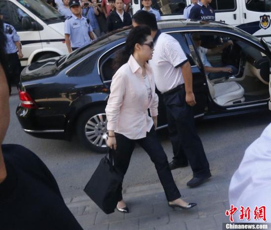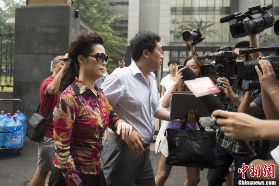 8月28日上午,李某某等五人涉嫌轮奸案在北京市海淀区人民法院一审开庭,李某某母亲梦鸽步入法院时被大批记者追访。中新社发 刘文华 摄