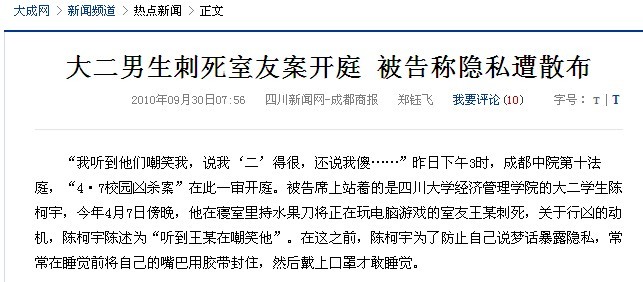 今日,轰动四川的成都某高校大学生杀人案在成都中级人民法院开庭。