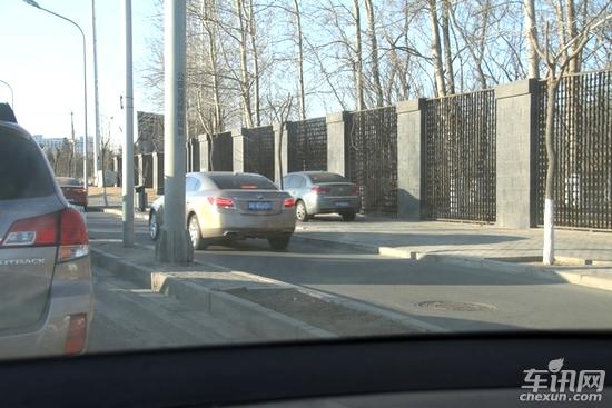 画面上的两辆小汽车,侵占了非机动车道。