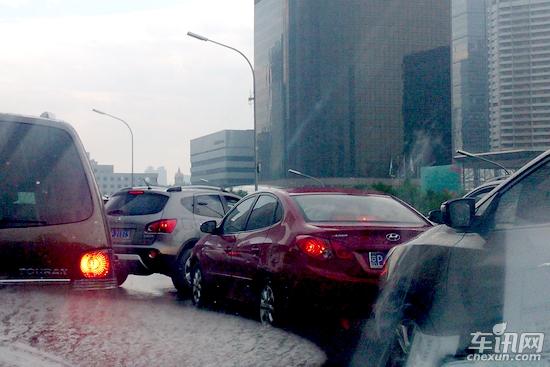 这样的“害人者”在路上极为常见,下面这张照片是6月11日下午在北京建国门外大街拍的,那辆逍客原本行驶在最内侧车道,此时它已将车身横过来,横切4条车道后,离开主路,转上三环路。