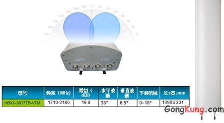1:双波束天线选型为康普安德鲁的HBXX-3817TB-VTM.