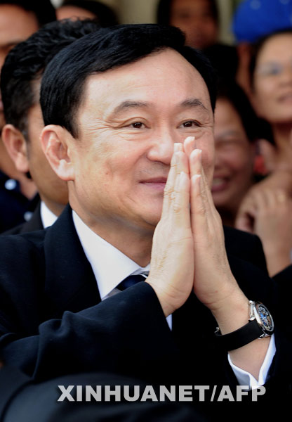 这是2008年2月29日,他信在泰国首都曼谷向支持者致意的资料照片。新华社/法新