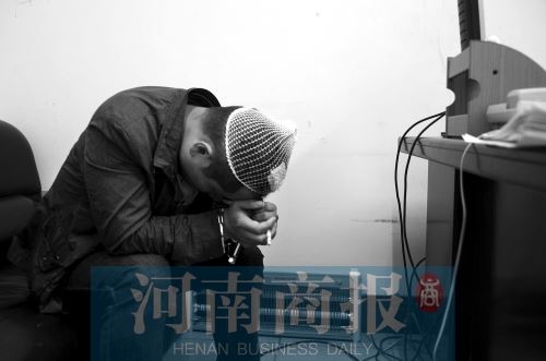 昨天下午3点,在郑州市交巡警二大队,李某不时地走来走去,戴着手铐的双手和衣服上有点点血迹。