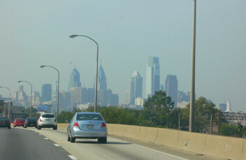 如今卫星照片上看美国宾州费城市,长方形白色巨大建筑就是景霁先生,所站地方的一角。