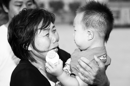 抱着被救回的孙子,奶奶喜极而泣 河南商报记者 张郁/摄