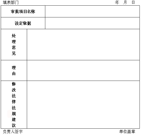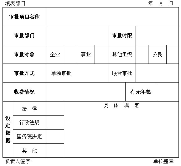 请将上述表格一式3份及电子版,于5月15日前送国务院行政审批制度改革工作领导小组办公室(以下简称国务院审改办)。
