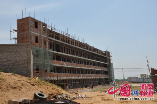 2013年5月2日,记者来到南阳市卧龙区龙兴乡就群众反映的问题进行采访。记者在该乡潦河坡村杨庄组几位群众的带领下来到该乡一初中后院正在建设的工地,只见中学操场后边院墙已经被扒掉,一栋五层的大楼即将封顶,工人们正在忙着建设。