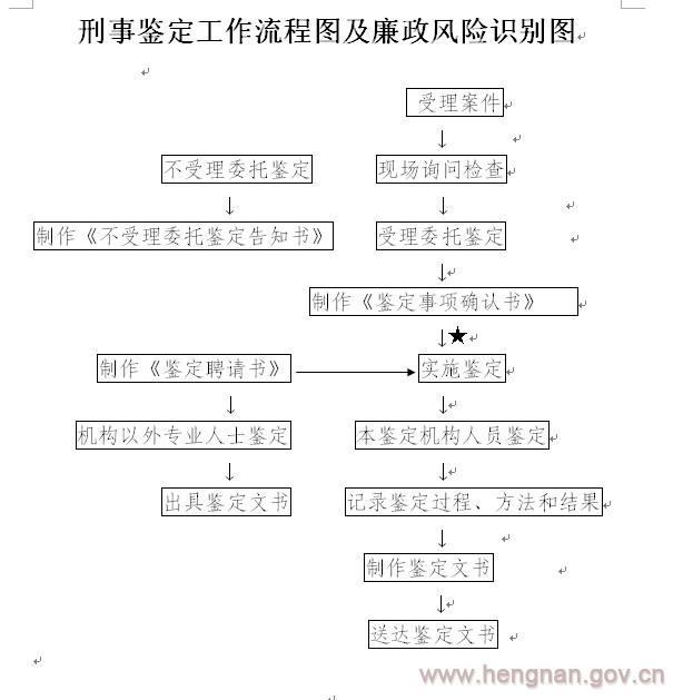衡南县公安局刑事技术鉴定制度 一、责任单位 衡南县公安局刑事科学技术室 二、责任人 衡南县公安局刑事科学技术室实行室主任管理下的岗位分工责任制度。室主任(刑侦大队四中队中队长)主持全面工作,刑事技术检验鉴定按照岗位分工分别担任各自的工作任务。制度责任人为中队长、各专业主办人、承办人。承办人设立A、B、C三角,主办人A角,协办人B角,当A角不能承担检验鉴定任务时由C角承担,承办人及协办人必须是根据《公安机关鉴定人登记管理办法》的有关规定,经公安机关登记管理部门核准登记,取得《鉴定人资格证书》并从事鉴定工作的专业技术人员。 三、权力行使及办理依据 (一)权力行使依据 1、《中华人民共和国人民警察法》; 2、《中华人民共和国刑事诉讼法》。 (二)办理依据 1、《公安机关办理刑事案件程序规定》(公安部令第35号); 2、《公安机关鉴定机构登记管理办法》(公安部令第83号); 3、《公安机关鉴定人管理办法》(公安部令第84号)。 四、刑事技术鉴定范围 刑事技术鉴定是指为解决案(事)件中某些专门性问题,公安机关鉴定机构及其鉴定人运用自然科学理论和成果,对人身、尸体、生物检材、痕迹、文件、电子数据、物品等进行检验、鉴别、判断,并出具鉴定意见的科学实证活动,包括:法医类鉴定(人身伤情鉴定、伤残等级鉴定、死因鉴定、生物物证鉴定)、痕迹类鉴定(指掌纹鉴定、枪弹鉴定、工痕鉴定、足迹鉴定)、理化类鉴定(毒物鉴定、毒品鉴定)、文检类鉴定(文字比对鉴定、印章比对鉴定)、影像类鉴定。 五、刑事技术鉴定办理程序 (一)鉴定委托 公安机关办理案(事)件需要进行鉴定的,除技术能力原因需要委托其他鉴定机构进行鉴定或者法律另有规定的,应当及时委托公安机关的鉴定机构进行鉴定。公安机关委托其他鉴定机构进行鉴定,由局领导批准。 公安系统内部委托的鉴定事项,同级鉴定机构有鉴定能力的,实行同级送检;超出基层鉴定机构鉴定项目范围的,实行逐级送检;特大案(事)件的鉴定或者鉴定难度大的,经拟委托的鉴定机构同意,可以在列入鉴定机构名册的鉴定机构中选择送检。 在诉讼中,对《公安机关鉴定机构登记管理办法》所列鉴定项目的鉴定事项需要重新鉴定的,应当委托列入鉴定机构名册的鉴定机构进行鉴定。 鉴定委托单位应委托鉴定单位应当委派办理案(事)件的人员送检。并在送检时出具鉴定委托书》、证明送检人身份的有效证件、委托鉴定的检材、鉴定所需的比对样本、鉴定所需的其他材料。 (二)鉴定的受理 鉴定受理人在受理鉴定时需查验委托主体和有关手续是否符合要求;听取送检人介绍与鉴定有关的案(事)件情况;查验可能具有污染、爆炸、放射、传染性疾病等危险的检材或样本,对确有危险的,应当在排除危险后受理;核对检材、样本的名称、数量和状态,以及检材和样本的来源、采集和包装方法等;确认是否需要补送检材和样本;核准鉴定的具体要求;受理鉴定的人员填写《受理鉴定登记表》,并向委托鉴定单位出具《受理鉴定回执》和《受理鉴定登记表》复制件。 (三)鉴定的实施 鉴定实行鉴定人负责制度。鉴定人应当独立进行鉴定,并对本人出具的鉴定意见负责。鉴定机构应当在受理鉴定委托之日起七个工作日内做出鉴定意见,出具鉴定文书;情况复杂、鉴定技术规程或者法律法规另有规定的,经鉴定机构负责人批准,可以与委托鉴定单位另行约定完成鉴定的时限。 (四)出具鉴定文书 鉴定人应当填写《鉴定文书审批单》,由本专业实验室负责人审核,所在鉴定机构负责人签发。鉴定文书分为鉴定书、检验报告两种格式。客观反映受理鉴定委托、检验或者实验过程,经过分析论证得出肯定性鉴定意见的,出具鉴定书。客观反映受理鉴定委托、检验或者实验过程,直接得出检验结果或者经过分析论证未能得出肯定性鉴定意见的,出具检验报告。 六、监督检查 (一)科研所内对案件办理情况进行经常性的自查自纠; (二)法制部门进行执法质量检查; (三)接受纪检、监察、公安督察等部门的监督; (四)接受社会监督。 七、责任追究 (一)过错责任内容 检验鉴定人员在行使职权过程中,有下列过错情形之一的,必须追究责任: 擅自受理任何机关、团体和个人委托的鉴定; 2、擅自参加任何机关、团体和个人组织的鉴定活动; 3、违反规定会见当事人及其代理人; 4、向当事人及其代理人或者其他无关人员泄露正在鉴定的工作情况; 5、接受当事人及其代理人的请客或者馈赠。 (二)责任主体认定 在行使职权过程中,故意违规、违法或者因过失造成严重后果的,按下列条款确定责任: 1、承办人故意违规、违法的,由承办人承担责任。 2、二人以上共同行使职权造成过错的,主勘人承担主要责任,协勘人承担次要责任。共同勘查共同承担全部责任。 3、所有勘查人员集体讨论决定的行为出现过错的,现场勘查指挥人为责任人。 4、经有关领导批准出现过错的,应追究批准人的领导责任。 (三)追责形式 1、在勘验、检查等取证工作中严重失职,造成无辜人员被处理或者违法犯罪人员逃避法律追究的,根据《公安机关人民警察纪律条令》第十二条第三款之规定,给予记过或者记大过处分;情节较重的,给予降级或者撤职处分;情节严重的,给予开除处分。 2、出具虚假鉴定结论的,根据《公安机关人民警察纪